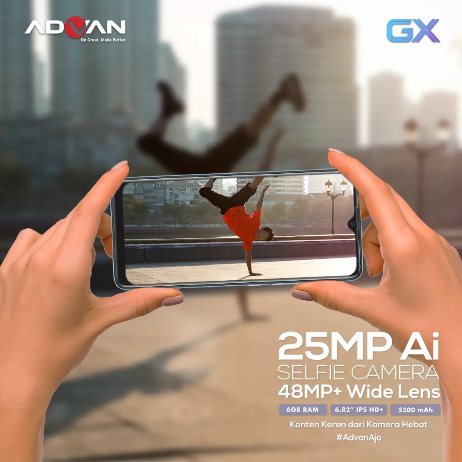Lantaran menyasar kalangan anak muda, Advan berupaya menghadirkan pembaharuan desain. Advan GX dibalut desain kekinian, memadukan tampilan yang stylish dengan warna unik.